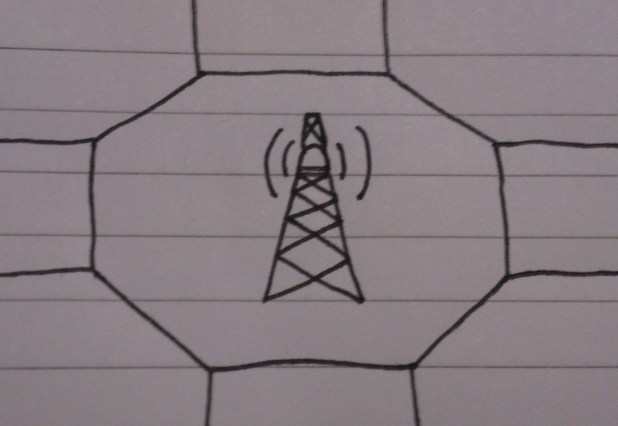 Cellular networks are broken up into cells, these cells are defined by base stations and the distance to which they propagate coverage. In them, radio waves are used instead of physical connections to transmit incoming and outgoing signals. Each base station is allocated a band within the Ultra High Frequency (UHF) portion of the radio frequency spectrum. Adjacent cells must not use the same transmission frequencies, as their areas of propagation overlap, and would cause interference. However, Non-adjacent cells are far enough away for their to be no overlap and frequency re-use is feasible.